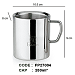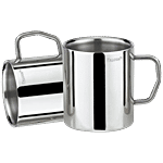 PddFalcon Wake-up Stainless Steel Thick Dual Wall Mugs - Easy Handle, 280 ml (Set of 2)