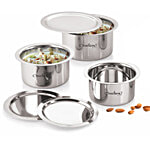 Neelam Neelam Stainless Steel Patila/Tope Set - Flat Bottom, With Lid (14 cm, 15.5 cm, 17 cm)