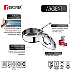 Bergner Argent Tri-Ply Stainless Steel Saucepan with Stainless Steel Lid has three layers. It is made with two layers of stainless steel and an aluminium core. It ensures even and consistent heating. It is an ideal cookware for any kitchen. It is easy to clean, wash and is long-lasting. This cookware is used for preparing and cooking food or stylishly serving food. It has a comfortable handle for easy handling and use. This saute pan has a stainless steel lid for easy and efficient cooking. It is compatible with both gas stoves as well as induction. It is used to boil water, make sauces and soups, or for braising foods. This saucepan is non-toxic and non-staining.