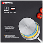 Bergner Argent Stainless Steel Saucepan has three layers. It is made with two layers of stainless steel and an aluminium core. It ensures even and consistent heating. It is an ideal cookware for any kitchen. It is easy to clean, wash and is long-lasting. This cookware is used for preparing and cooking food or stylishly serving food. It has a comfortable handle for easy handling and use. This saucepan has a stainless-steel lid for easy and efficient cooking. It is compatible with both gas stoves as well as induction. It is used to boil water, make sauces and soups, or for braising foods. It is suitable for both gas stoves and induction tops. This saucepan is non-toxic and non-staining.