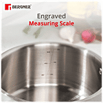 7. Features:- Handles stay cool during cooking, Energy-saving induction bottom, 3-layered extra thick body, Practical measuring scale inside the pot.