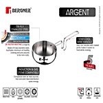 Bergner Argent Triply Stainless Steel Tadka Pan is high-quality aluminium cookware. It is made with two layers of stainless steel and an aluminium core. It has a classy finish and gives an elegant look to kitchen decor. This pan is an ideal cookware for any kitchen. It is easy to clean and wash. The pan with the handle is long-lasting and durable. This pan has a comfortable handle which makes it easy to carry and handle. It is compatible with a gas stove. It is has a deep well that prevents whole spices from jumping out of the pan as they're being cooked.
