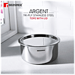 Bergner Argent Tri-Ply Stainless Steel Tope with Stainless Steel Lid has three layers. It is made with two layers of stainless steel and an aluminium core. This tope ensures even and consistent heating. It makes ideal cookware for any kitchen. It is easy to clean and wash. This tope is durable and long-lasting. It can be used for preparing and cooking food or stylishly serving it. This tope has a stainless-steel lid for easy and efficient cooking. It has an induction base making it compatible with both inductions as well as a gas stove.