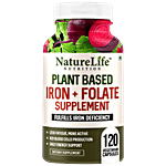 Nature Life Nutrition Plant Based Iron & Folate Dietary Supplement Capsules - For Energy, 120 pcs
