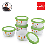 Cello Opalware Condiment Set - Tulip Garden - White and Green, Set of 6