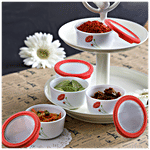 Cello Opalware Condiment Set - Red Poppy - White and Red, Set of 6