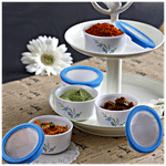 Cello Opalware Condiment Set - Blue Creeper - White and Blue, Set of 6
