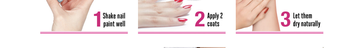 • Be sure to apply two coats of nail polish for that salon-quality finish.