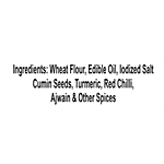 Wheat Flour, Edible Oil, Iodized Salt, Cumin Seeds, Turmeric, Red Chilli, Ajwain And Other Spices.
