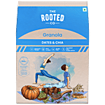 The Rooted Co Dates & Chia Granola is made with the finest ingredients. This granola is filled with superfoods grains and nuts. It contains dates, seeds, oats and honey. This bar is gluten-free, vegan and zeroes trans fat. It is rich in fibre, plant protein, healthy fat and essential nutrients. A sweet and nutritious treat for you that is healthy. Our Dates & Chia Granola is sodium-free, high in manganese and has no added oil.