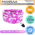 Mansaa USB Copper String Lights - 3 M, 30 LEDs, Pink, For Home Decor, 1 pc