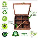 Sheesham wood-made masala box is a natural product and eco-friendly. It also has a wooden spoon inside the box. Apart from that, it is also compostable, reusable, water-resistant, vegan, scratch-resistant, non-corrosive, BPA-free. Moreover, it also has 6 Compartments and the is spacious as well. Since the masala spice box is a cut out of Sheesham, is very sturdy, strong and has an elegant look.