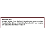 Refined Wheat Flour, Refined Palmolein Oil, Interesterified Vegetable Fat (Blend Of Palm Oil, Palmolein Oil And Sesame Oil) Iodized Salt And Carom Seeds.