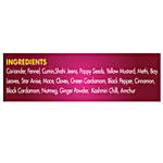 Coriander, Fennel, Cumin, Shahi Jeera, Poppy Seeds, Yellow Mustard, Methi, Bay Leaves, Star Anise, Mace, Cloves, Green Cardamom, Black Pepper, Cinnamon, Black Cardamom, Nutmeg, Ginger Powder, Kashmiri Chilli, Amchur