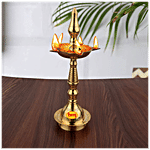 TRM Fancy Kerala Pooja Diya Stand Lamp is made up of pure brass that makes it more beautiful and durable. This brass stand has a high-quality finish. It can be used on daily basis to create a meditative and peaceful ambience in your puja room and house. It is used to light the lamp using cotton wicks. This diya is used since ancient times as a decoration and a source of light.
