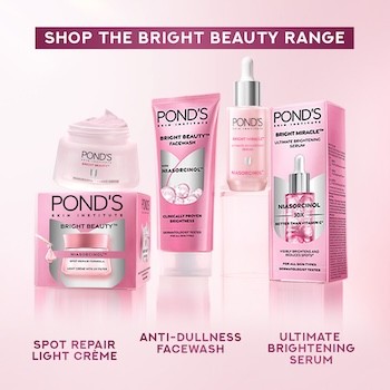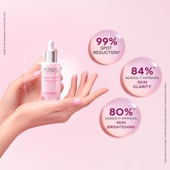 Unveil your most bright skin yet with Pond's Bright Beauty Ultimate Brightening Serum. This groundbreaking serum is now supercharged with the revolutionary Niasorcinol, an ingredient born from 25 years of cutting-edge research at the Pond's Skin Institute. Our patented technology harnesses the unparalleled power of Niasorcinol, delivering an unprecedented 30X more brightening power than Vitamin C, promising ultimate brightness for your complexion. Prepare to be amazed as you experience visibly brighter skin in just 1 week. Beyond instant radiance, this advanced formula actively works to prevent spot formation, ensuring a clearer, more even-toned complexion over time. Watch as existing spots visibly fade, with clinical studies proudly demonstrating its ability to reduce up to 99% of spots. This isn't just a promise; it's a clinically proven transformation for your skin. Your Ultimate Brightening Regimen is here! Achieving radiant, bright skin is effortless with our recommended regimen, designed to maximise the benefits of the Ultimate Brightening Serum: