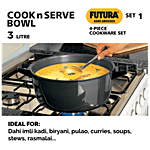 Hawkins Futura Hard Anodised Cookware Set - Black, ASET1, Tava 26 cm + Cook N Serve Bowl + Fry Pan 22 cm + Wok Pan