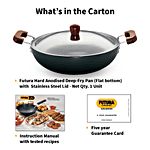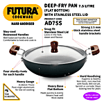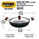 Hawkins Futura Hard Anodised Aluminium Deep-Fry Pan/Kadhai - 36 cm, 4.06 mm, With Steel Lid, AD75S