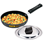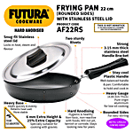 Hawkins Futura Hard Anodised Frying Pan With Steel Lid - Rounded Sides, Diameter 22 cm, Thickness 4.06 mm, Black, AF22RS