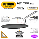 No Question askedHawkins Hard Anodised Roti Tawa - Induction Base, 24 cm, 4.88 mm, Stainless Steel Handle, IART24