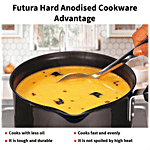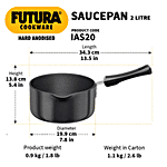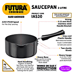 Hawkins Futura Induction Compatible Hard Anodised Saucepan is made of high-quality hard anodised material. It ensures even and consistent heating. It is an ideal cookware for any kitchen. It is easy to clean, wash and is long-lasting. This cookware is used for preparing and cooking food or stylishly serving food. It has comfortable handles for easy handling and use. It is compatible with both gas stoves as well as induction. It is used to boil water, make sauces and soups, or for braising foods. It is suitable for both gas stoves and induction tops.