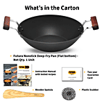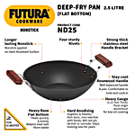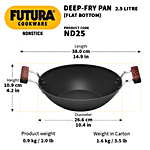 Hawkins Futura Non-stick Deep-Fry Pan is made with hard anodised material that has a non-stick coating over it. Deep-Fry Pan is like a kadai or saucepan, that has a flat bottom for easy stability. This fry pan ensures even and consistent heating. It is an ideal cookware for any kitchen. It is easy to clean, wash and is long-lasting. This cookware is used for preparing and cooking food or stylishly serving food. It has heavy-duty heat-resistant handles so that it stays cool while cooking. It is ideal for samosas, vegetables, for making sweets and many more deep-frying foods.