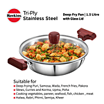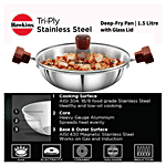 Hawkins Tri-Ply Stainless Steel Induction Compatible Deep-Fry Pan that has three layers. It is made with two layers of stainless steel and an aluminium core. This pan ensures even and consistent heating. It is an ideal cookware for any kitchen. It is easy to clean, wash and is long-lasting. This cookware is used for preparing and cooking food or stylishly serving food. It has a heavy-duty stainless steel handle that has a silicone insert so that it stays cool while cooking. This Kadai has a glass lid for easy and efficient cooking. It is ideal for samosas, vegetables, for making sweets and much more deep frying foods.