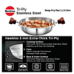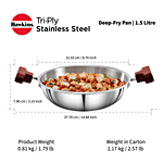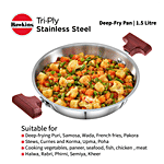 Hawkins Tri-Ply Stainless Steel Deep Fry Pan/Kadai - 3 Layer, Induction Base, 26 cm, 3 mm, SSD15, 1.5 l