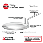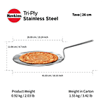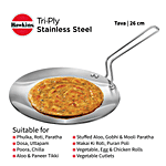 Hawkins Tri-Ply Stainless Steel Tawa - Induction Base, 26 cm, 3.5 mm, Stainless Steel Handle, SSTV26, 1 pc