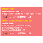 Manufactured by: Sunilla Foods, S.No 90/2B1-A1, Vedapatti Village, D. Perumapalayam Post, Salem, Tamil Nadu - 636122.