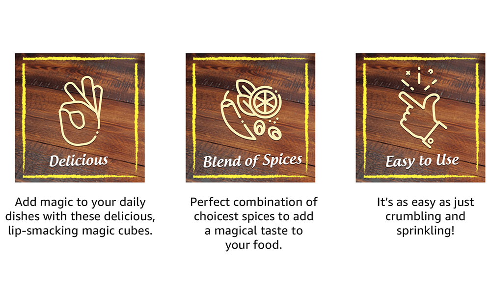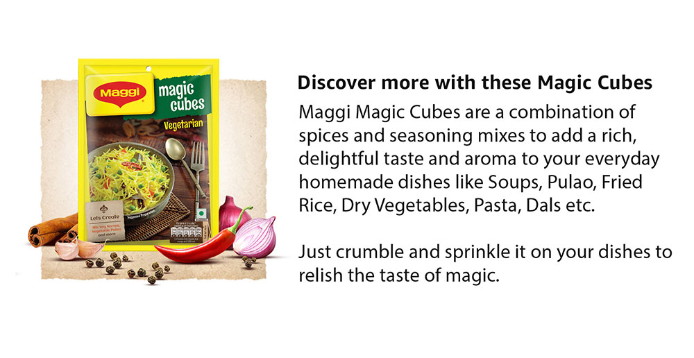 Now add magical taste to your everyday homemade dishes like rice, vegetables, pasta, soups, dals etc. with MAGGI Magic Cubes. These versatile cubes are made using carefully selected ingredients, spices and herbs that have been perfectly blended to give a rich, delightful taste, colour and aroma to any dish you prepare. Storage Instructions: Store in a cool, dry & hygienic place to protect from insects, pests & strong odours.