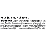 Greek Yogurt (Pasteurised Double Toned Milk, Milk Solids, Permitted Starter Cultures), Processed Rose Lychee Pulp (Lychee Puree, Sugar, Water, Rose Petals, Thickener (Pectin), Natural Flavouring Substances, Beetroot Juice Concentrate, Acidity Regulator (Citric Acid)) .