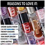 Get a shade for every mood with Blue Heaven Bling Nail-paint - a range of 48 trendy and vibrant must-have shades. With a creme gloss finish, long-lasting formula and fan-shaped brush these nail lacquers ensure that the colour stays fresh and on for really long. Pick a shade of your choice and you're all set to shine with this look.