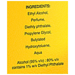 Ethyl Alcohol, Perfume, Diethly Phthalate, Propylene Glycol, Butylated Hydroxytoluene, Aqua.