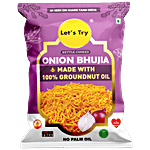 Indulge in the authentic flavours of India with Let's Try Kettle Cooked Onion Bhujia. Made with groundnut oil, these crispy onion snacks are kettle-cooked to perfection, giving a unique homemade taste. Perfect for snacking on their own or adding to your chaat or sandwiches, these onion bhujias are a savoury treat you won't be able to resist.