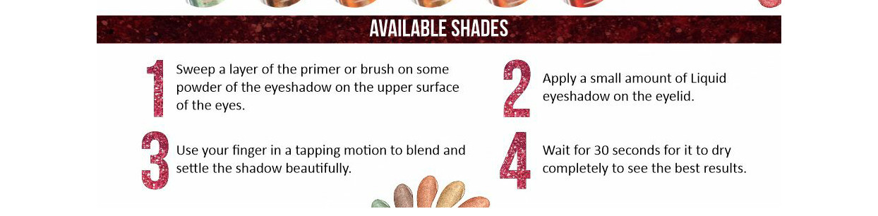 Create stunning eye looks that perfectly enhance any style, Swiss Beauty Liquid Eyeshadow is ideal for all your glammed up party looks. Daring and adventurous. This metallic eyeshadow effect can lavish your eyes with sparkle and shine brightening and emphasizing your makeup to the next level. The shadows are Highly Pigmented Eyeshadow, Radiant Shimmer Finish, Long Lasting, Non-Transfer