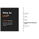 1. Use after cleansing, toning and applying all serums. Take sufficient quantity of product and massage into face and neck. Layer with sunscreen in AM.
