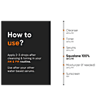 1. Apply few drops after cleansing, toning and all other water based serums that you may be using. Spread over your face as a moisturizer. This is a very light-weight product and will get absorbed in the skin rapidly without leaving any residual feel.