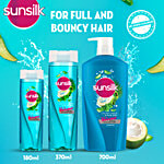 New Sunsilk coconut water and aloe vera volume shampoo for voluminous and bouncy hair. It comes with the goodness of natural ingredients like coconut water and aloe vera. Coconut water is known to be rich in vitamins and minerals and aloe vera is well known for its moisturizing and nourishing properties. Together this formula of powerful ingredients works best to nourish hair, giving it 2x volume and bounce (Based on lab test vs unclean hair).