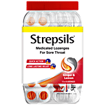 Strepsils Medicated Lozenges For Sore Throat - Quick Action, Long Lasting Relief, Ginger & Lemon, 104 pcs Pet Bottle