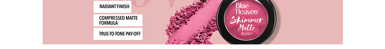 Blue Heaven Shimmer Matte Blush is a lightweight powder shimmer blush that delivers natural colour all-day. This is natural-looking yet noticeable blush glides evenly and enhances skin tone with a radiant glow.
