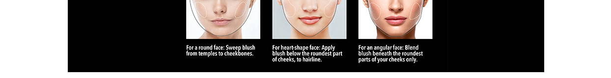 2)For Heart- Shape Face: Apply blush below the roundest part of cheek, to hairline.