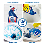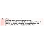 Flush toilet before cleaning. Twist cap to open. Squeeze the toilet cleaner under the rim and around the bowl. Leave for 15 minutes. Do not use the toilet during this time. Use brush to clean the entire bowl and then flush.