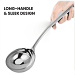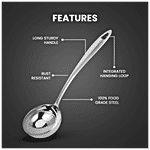 The Fackelmann Stainless Steel Serving Ladle boasts top-notch stainless-steel craftsmanship, ensuring exceptional quality. It enhances the joy of everyday cooking. With a generous length of 35cm, it provides a suitable size for your culinary needs. Its ease of storage, use, and cleaning make it a practical choice. Furthermore, its robustness and durability guarantee a long-lasting kitchen companion. The ladle's thoughtfully designed handle serves both cooking and serving purposes, making it an excellent choice for presenting dishes like soup, stew, and more.