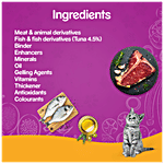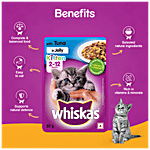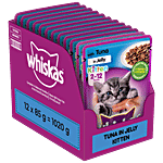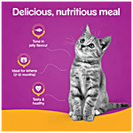 Whiskas Kitten (2-12 months) Wet Cat Food Tuna in Jelly is made with high-quality ingredients and nutrition for pet kittens. This is a great meal choice for all your small cats. It provides kittens with a shiny coat, better eyesight, and energy. This chewy and delicious cat food is made for cats of all sizes and breeds. It is a well-balanced cat food that prevents obesity. It provides quality protein, fat, and minerals without any artificial colours or flavourings.