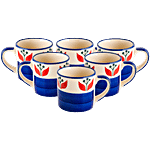 bb home Earth Teacup Set - Handcrafted Ceramic, Sepal Red Blue, 180 ml (Set of 6)