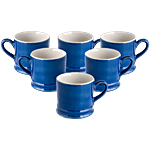 bb home Earth Tea/ Coffee Mug Set, Hand Crafted Ceramic - Calico Blue, 200 ml (Set of 6)