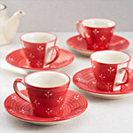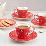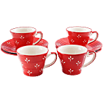 bb home Earth Teacup & Saucer Set, Hand- Painted Ceramic- Blooming Crimson, 110 ml (Set of 4)
