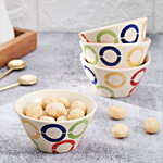 bb home Earth Dining Bowl/Katori Set, Hand Painted Ceramic, Polychromatic Rings, 150 ml (Set of 4)