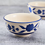 No Question askedbb home Earth Dining Bowl/Katori Set - Handcrafted Ceramic, Floral Ancient Royal Blue